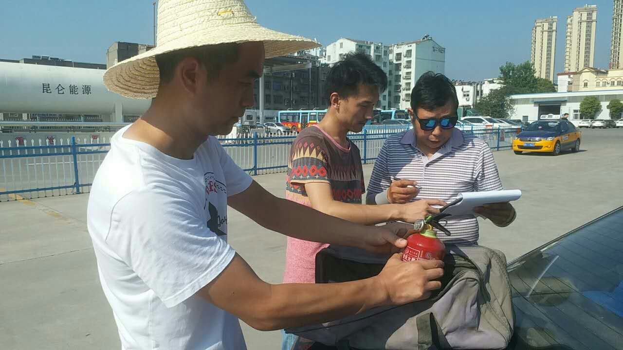 重點(diǎn)檢查車(chē)輛是否漏氣,電路和滅火器。對(duì)駕駛員私自改裝進(jìn)行整改。要求駕駛員認(rèn)真學(xué)習(xí)公司制定的《出租汽車(chē)駕駛員消防安全須知》并簽字。在6月安全生產(chǎn)月已經(jīng)完成的消防安全培訓(xùn)及演練的基礎(chǔ)上,進(jìn)一步加強(qiáng)駕駛員消防安全意識(shí),強(qiáng)化駕駛員發(fā)生車(chē)輛火災(zāi)的應(yīng)急自救能力。