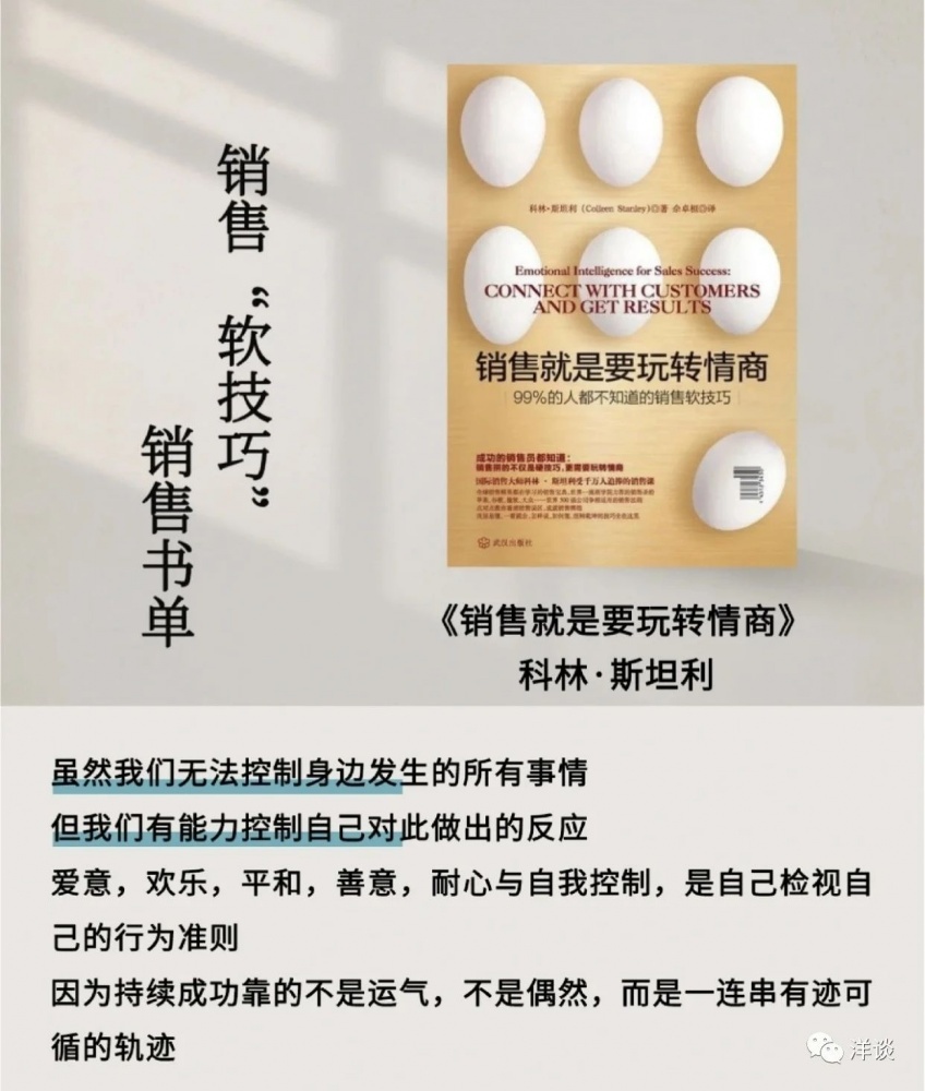 前段時(shí)間幾個(gè)同事來找我傾訴,說客戶的溝通該做的我都做了,最后怎么客戶不理我了?我們一起分析原因,商量對策。后來我把大家遇到的問題進(jìn)行了歸納總結(jié),準(zhǔn)備分析探討一個(gè)主題:為什么客戶不理我。在充實(shí)材料的時(shí)候,我發(fā)現(xiàn)了一本好書,它從問題的本質(zhì)、理論的依據(jù)以及實(shí)操的維度解答了大家的困惑。今天和大家分享這本書的精髓。書名叫作《銷售就是要玩轉(zhuǎn)情商》,它的副標(biāo)題是“99%的人都不知道的銷售軟技巧”,在博雅、思文書屋都有賣。