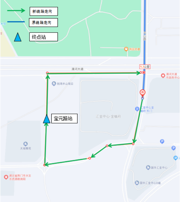◆??空军c(diǎn):原??空军c(diǎn)不變,撤銷天山路“匯金中心”東側(cè)始發(fā)站點(diǎn)。新增??空军c(diǎn):寶元路