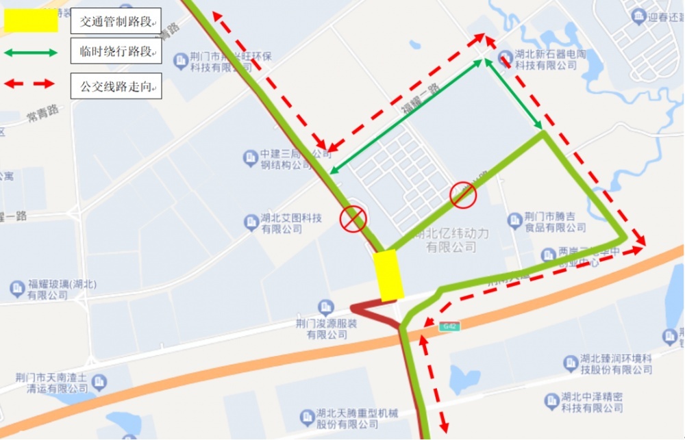 根據(jù)荊門市2023年中心城區(qū)城市建設計劃,市政府投資工程建設管理中心擬在龍井大道進行億緯橋(龍井大道上跨荊南大道立交)改造工程,2023年6月26日—2024年2月3日期間龍井大道常興路至荊南大道施工路段實行封閉交通管制。為保證封閉施工期間市民正常公交出行,荊門城區(qū)28路、59路線路走向需臨時調整,具體調整如下: